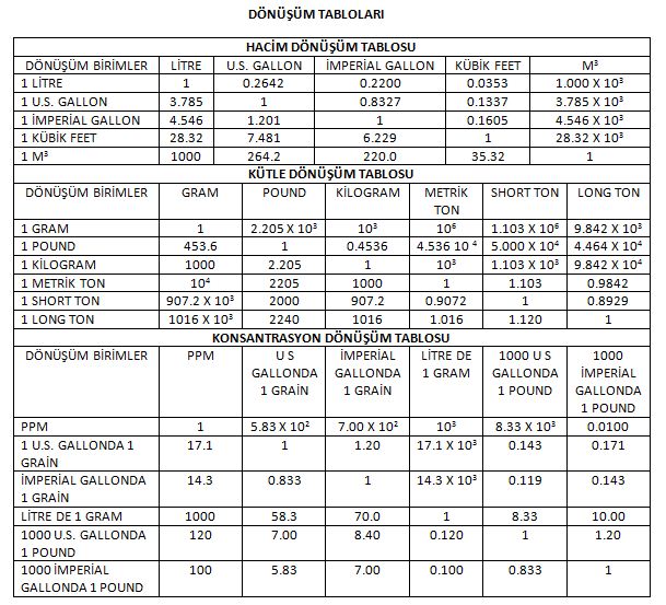 SU İÇİN KULLANILAN SABİT DEĞERLER
