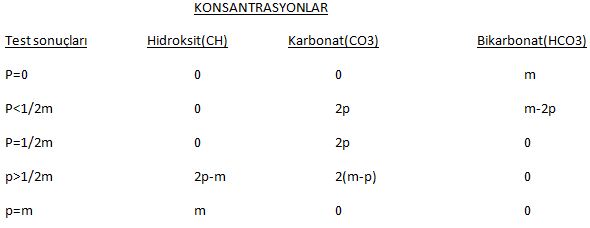 Bunların sonucunda p ve m alkalilil arasındaki oran ve büyüklük farklılıkları suyun yapısındaki OH,CO3,HCO3 konsantrasyonları hakkında bilgi verir.